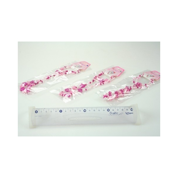 Sada korále a náramek v růžovo- bílém provedení - assort - motýlci,kytičky.Korále v celkové délce cca 34 cm a náramek v délce cca 12 cm.Lze natáhnout,navléknuto na gumičku. Výrobek slouží k dekorativním ůčelům.