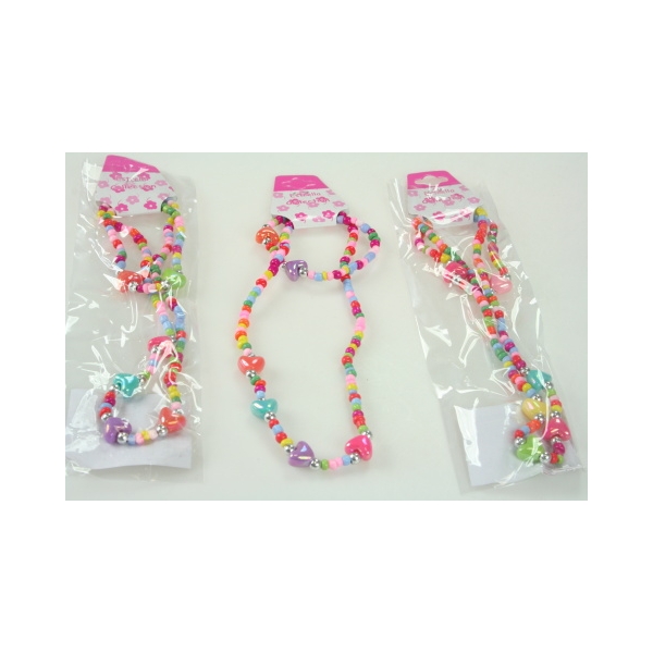 Sada korále a náramek s drobnými korálky a srdíčky.Celková délka korálů cca 36 cm a náramku cca 11 cm.Lze natánnout,navlečeno na gumičku.Výrobek slouží k dekorativním ůčelům.