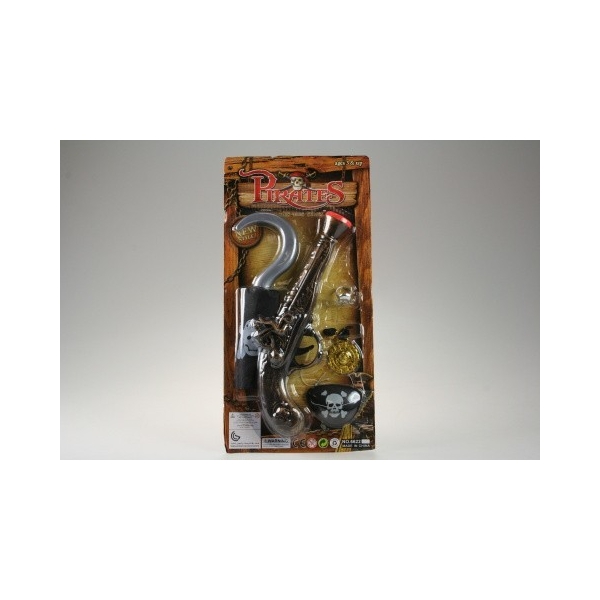 Pirátská sada obsahuje bambitku o velikosti cca 28 cm ,pirátský hák o velikosti cca 23 cm,pásku na oko,prsten a zalťák pro malé piráty.Věk 3+