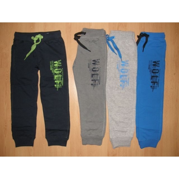 Chlapecké tepláky Wolf slabé na léto T2586. 100%. Pas na gumu + funčkní šňůrka na stažení. Nohavice dole na gumu.
