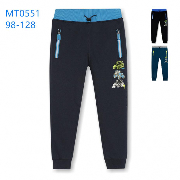 Chlapecké slabé tepláky KUGO MT-0551. 80% bavlna, 15% polyester, 5%elastan. Pas na gumu + olivka na stažení. Nohavice dole na gumu. Dvě funkční postranní kapsy na zip.
