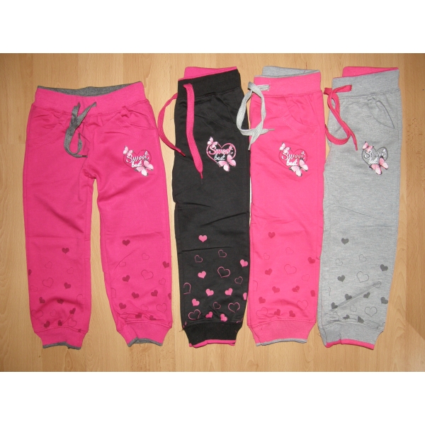 Dívčí celoroční tepláky slabé KUGO M-7028. 100% bavlna. Pas na gumu + funkční šňůrka na utažení. Dvě funkční kapsy po stranách. Nohavice dole na gumu.