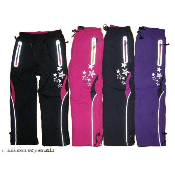 Zateplené dívčí šusťáky fleesem KUGO H-207. Uvnitř flees. Pas na gumu + funkční olivka na utažení. Dvě funkční kapsy po stranách na zip.Spodní část nohavic olivka na stažení