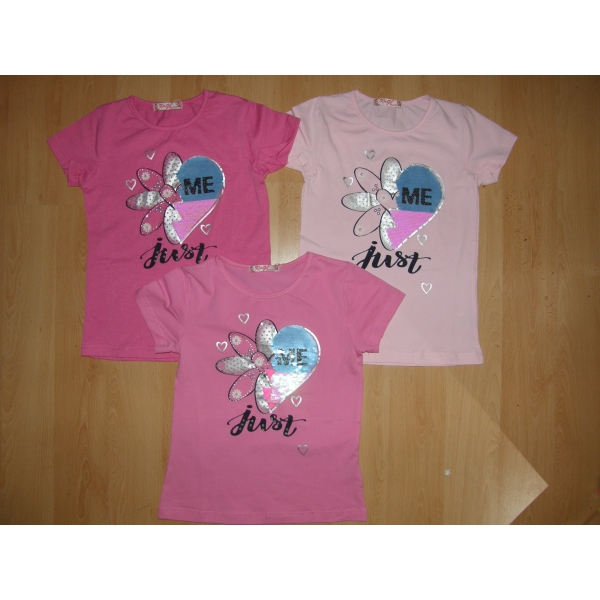 Dívčí tričko KUGO S3203. Pul srdce je s měnícíma flitrama 95% bavlna, 5% elastan.